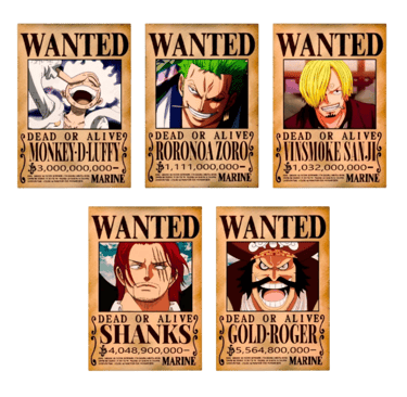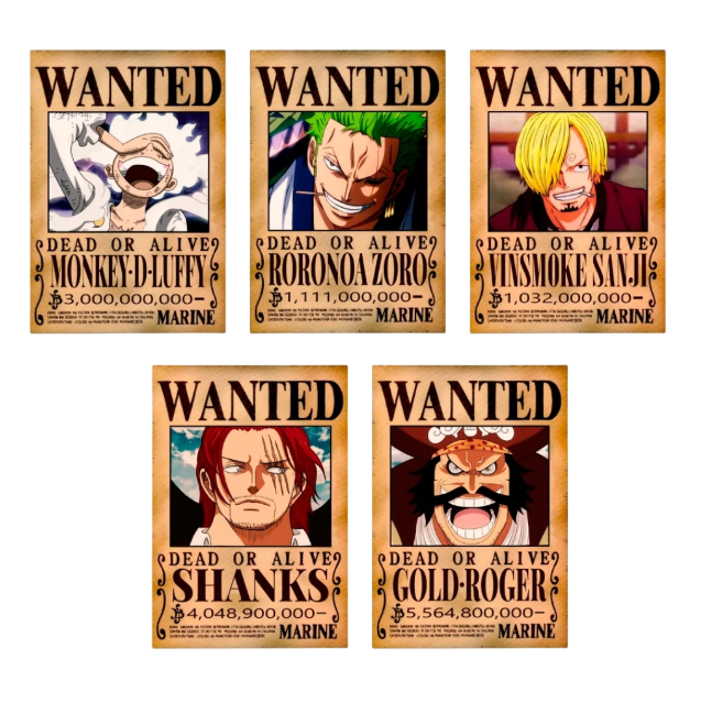 Transforme seu espaço com esta coleção exclusiva de pôsteres ‘Wanted’ dos personagens icônicos do anime. Ideal para fãs colecionadores e decoração geek. Alta qualidade de impressão em papel resistente, cores vibrantes e acabamento perfeito para exposição em paredes.